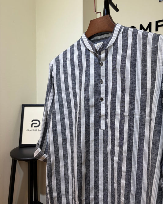 Charcoal Grey Striped Band Collar Katua