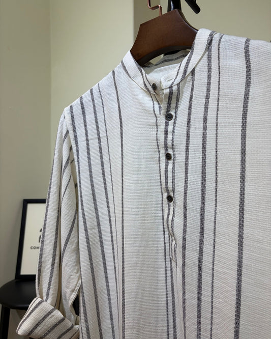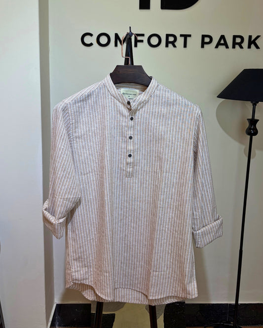 Beige Striped Mandarin Collar Katua