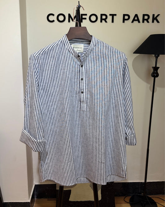 Sky Blue Striped Band Collar Katua